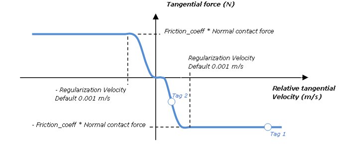 - Do not increase the regularization velocity significantly, otherwise it will only work between these values. The friction force will never reach its maximum value. This results in artificially limiting the friction effect.