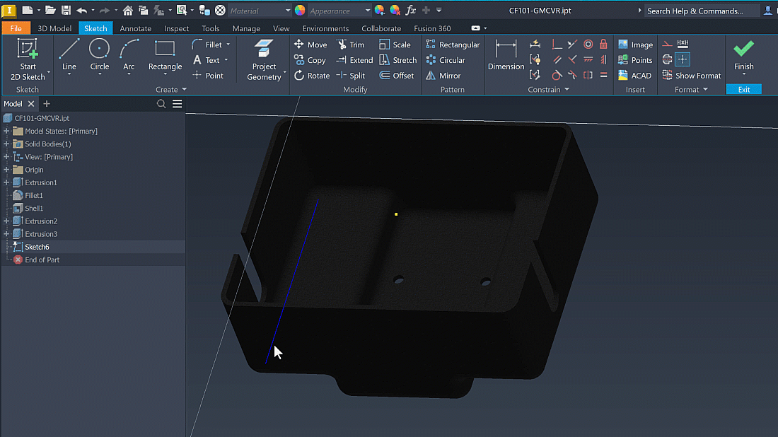 When Project Geometry is active, you can switch between sketch and construction geometry by holding down the shift key when clicking the geometry you want to project. This enhancement works for 2D and 3D sketches.