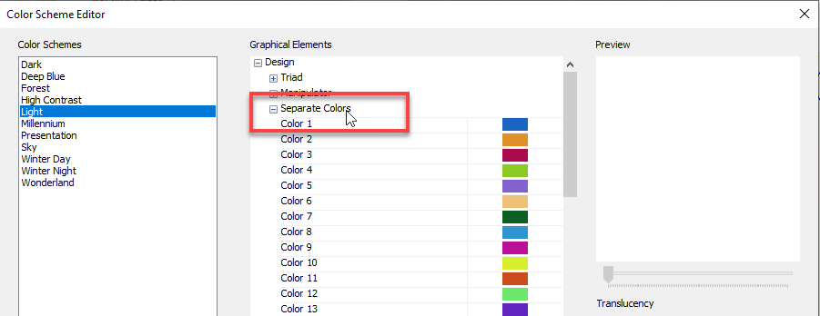 The color list in the Color Scheme Editor can now be customized. Options were added to the newly created "Separate Colors" section.