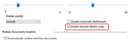 Sketch geometry display is improved so curves display smoother. This application option for line display is on by default.