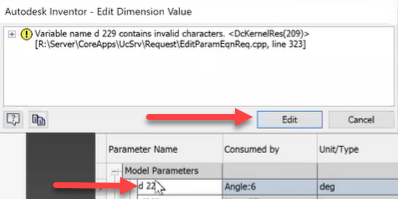 If the name of a parameter is invalid (for example using a space or comma), the warning dialog now contains an Edit button which enables you to correct the name directly. Previously, you could only discard the edits and start again.