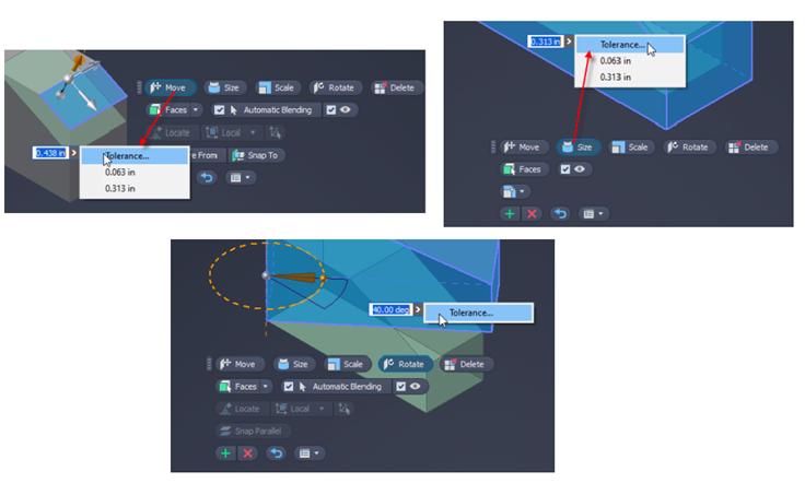 You are now able to set the Tolerance when directly editing features as the option is added to the context menu for Move, Size and Rotate.