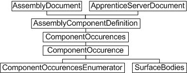The Autodesk Inventor API employs the concepts of component definitions and occurrences. These are somewhat analogous to AutoCAD block definitions and inserts. A component definition is also the base class for other component definition types - PartComponentDefinition, AssemblyComponentDefinition, SheetMetalComponentDefinition, WeldmentComponentDefinition, and WeldsComponentDefinition. These are used only when accessing functionality specific to these types.