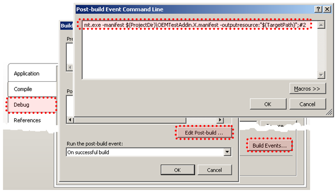 into your add-in’s dll. You define a post-build step through the Compile tab of the Application