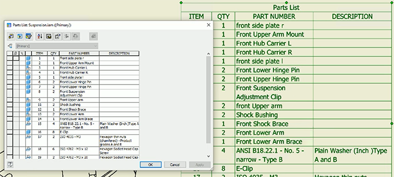 The 3D model annotations applied to parts can be retrieved in assembly drawing views.