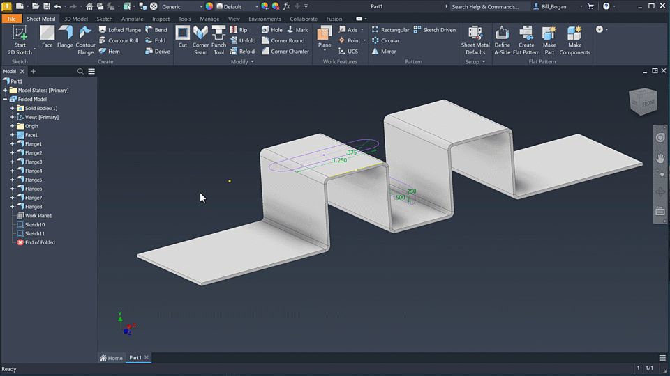 The following Sheet Metal commands have been modernized, incorporating the property panel interface and workflows. Quickly and easily create sheet metal flange, face, and cut features. Take advantage of the updated interface and workflows to improve your sheet metal tasks.