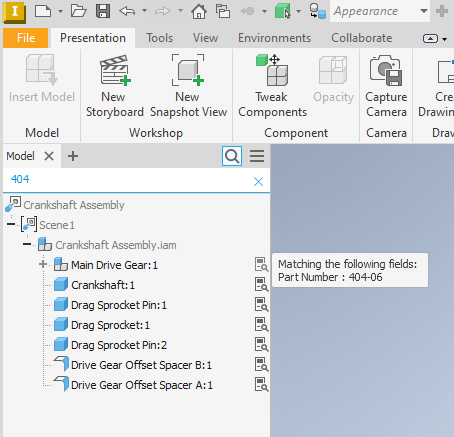 In this release of Inventor, the ability to search dependent document iProperties in the IPN file type has been added.