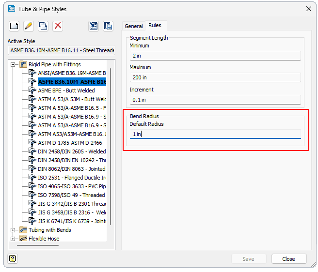 Now, all default Bend Radius values are saved into the exported Tube and Pipe style. The bend radius in T&P style can be exported to XML file, and it can also be imported.