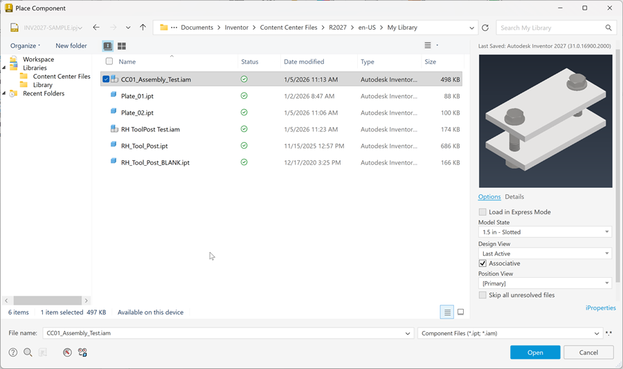 Several enhancements are made to Content Center in this release of Inventor.