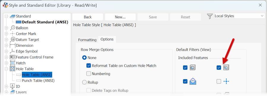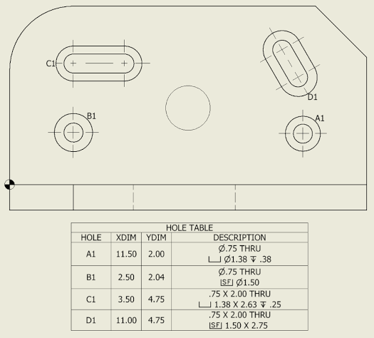 The hole table now supports slot features. When enabled in your hole table style settings, slots will be included in the table with coordinates referencing the slot center and a 'Slot Note' description.
