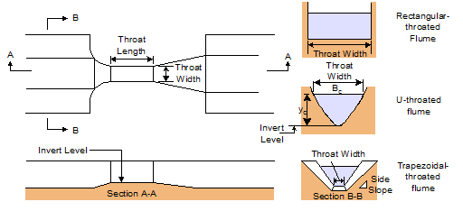 The Invert level is the level above datum of the top of the hump (assuming the flume has a hump in the throat). Hump height is then calculated as Invert level minus Upstream Invert. If the flume has no hump it is the level above datum of the centre of the throat.