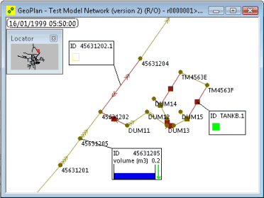 Visual feedback is also available for some parameters; for example, level in a manhole. If these parameters are selected for display on a label a small graphic will be displayed. The graphic is updated during replay of the simulation to give feedback on the state of the network object. Parameters for which visual feedback will be displayed will have the text (Activates graphic) next to the their name on the Custom Label Settings Dialog - Content page.