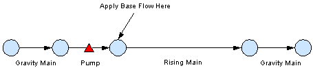 To remedy this, apply a small Base Flow to the subcatchment draining to the upstream (physically lower) end of the rising main. This will cause the rising main to fill up during initialisation, as the water cannot flow back through the pump.