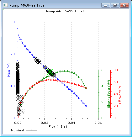 - Select the Pump operation option from the Pump Graph Dialog. A graph of pump operation will be displayed.