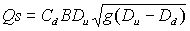 Where: Qs = Discharge Cd = Discharge coefficient B = Width of weir g = Acceleration due to gravity Du = Upstream depth relative to weir crest level or orifice level |