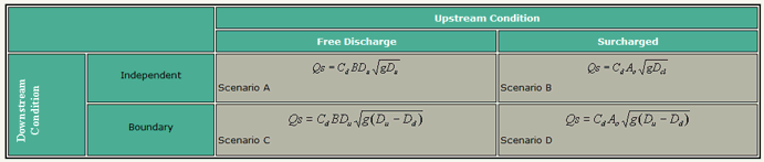 Table 1 presents a summary of the four combinations of upstream and downstream conditions including the equation which will be used in each case.