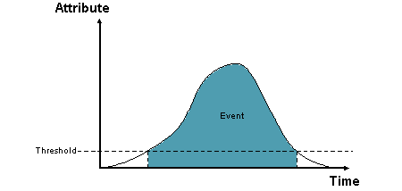 Event occurs when attribute value (e.g. flow) crosses Threshold line (if all Event Identification rules are satisfied) |
