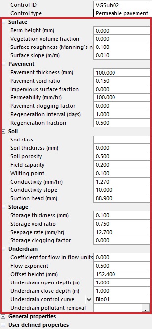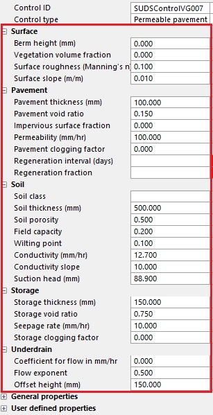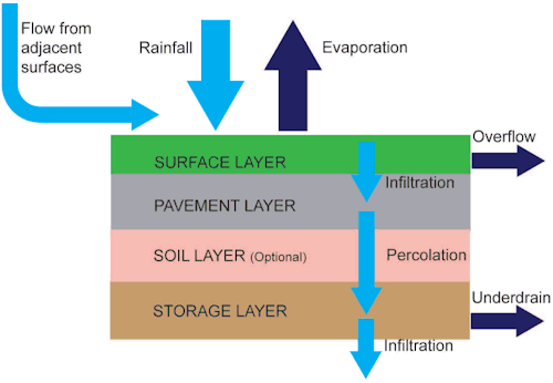 *The individual parameters which define each part of a permeable pavement are described in the SUDS Control Data Fields and LID Control Data Fields (SWMM).