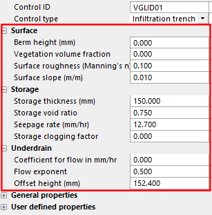 SUDS properties for an infiltration trench LID properties for an infiltration trench