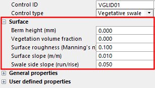 *The individual parameters which define each part of a vegetative swale are described in the SUDS Control Data Fields and LID Control Data Fields (SWMM).