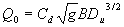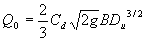 Where: Q0 = free outfall discharge, m3/s Cd = discharge coefficient g = acceleration due to gravity, m/s2 B = width of weir, m Du = upstream depth with respect to the crest, m |