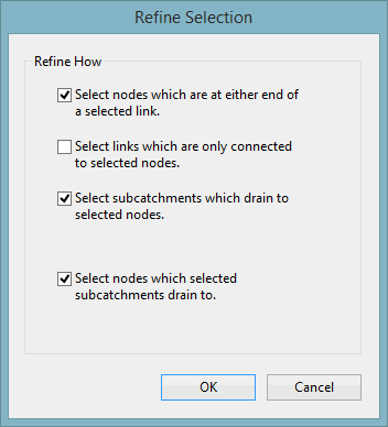 This option ensures that there are no links that do not have a node at each end, that subcatchments draining to any of the nodes are included, and that nodes which the selected subcatchments drain to are also included.
