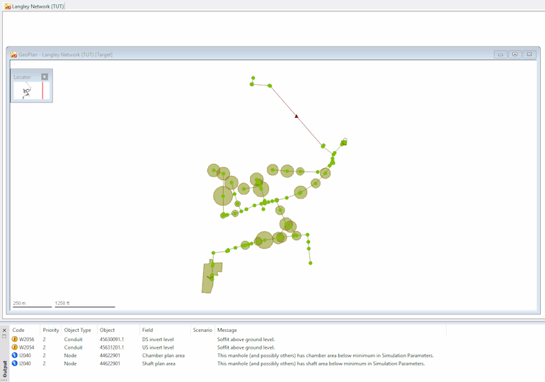 Click once the error or warning to highlight the corresponding network object on the GeoPlan.