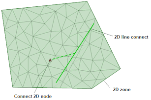 A new type of line, 2D line connect, which represents a flow exchange boundary, is now available for InfoWorks networks. It lets you associate a Connect 2D node (a node whose Node type set to 2D and its Connection type set to 2D line) to multiple 2D elements in a 2D mesh that intersect the line. Previously, you would have only been able to use a Connect 2D node to connect a Conduit 2D to a single element.
