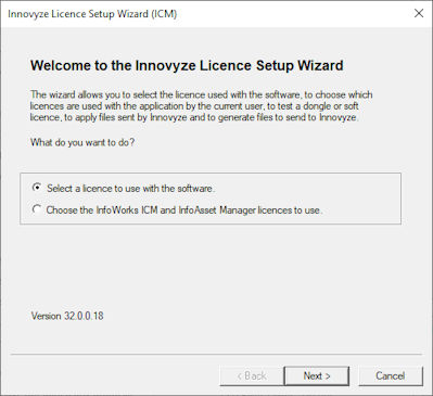 This wizard allows users to perform the following tasks for licences obtained from Innovyze:
