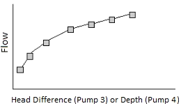 A pump curve in a SWMM network is used to define the relationship between a pump's flow rate and conditions at the inlet and, where applicable, the outlet sides of the pump.