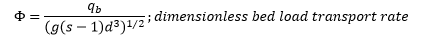 d: sediment grain diameter (m); d50 unless otherwise stated