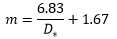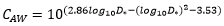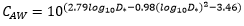 For D* > 60 n = 0 AAW = 0.17 m = 1.5 CAW= 0.025 |