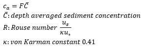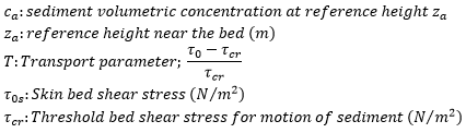 This topic lists the equations used in the calculation of 2D sediment transport when carrying out 2D Water Quality Simulations.
