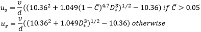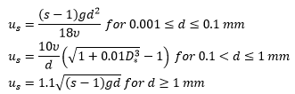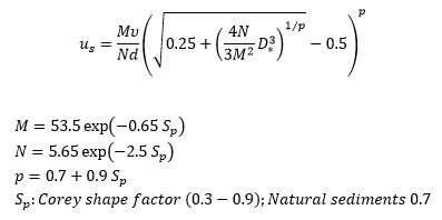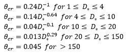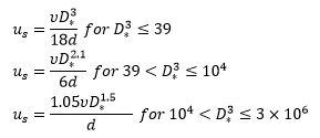 For 1 < D* ≤ 60 (fine sediments) n = 1 - 0.56log10D*