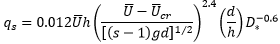 The Engelund-Hansen (1967) equation was developed by equating the work done by the drag forces of the flow to the potential energy gained by particles as they move up the face of a dune. The form of the equation used is: