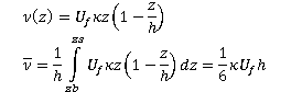 This model is based on the assumption that the velocity profile over the vertical follows a logarithmic profile, which is a sensible approximation for fully developed turbulent flows. Considering that the flow is at equilibrium, i.e., the hydrostatic pressure forces are balanced by the shear stress over the vertical, the resulting viscosity profile becomes parabolic, and the average value over the vertical becomes: