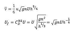 where: ν is averaged eddy viscosity (m2/s) n is Manning coefficient (s/m1/3) U is Velocity (m/s) |