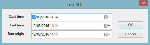 Test SQL dialog is displayed, which, as default, displays the current date and time.