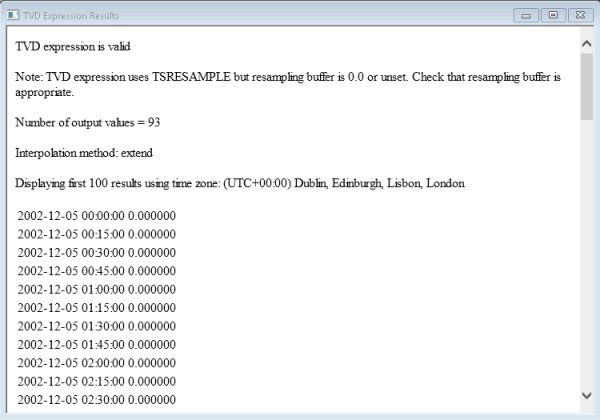 If the expression is valid, a window containing the results of evaluating the expression, is displayed.