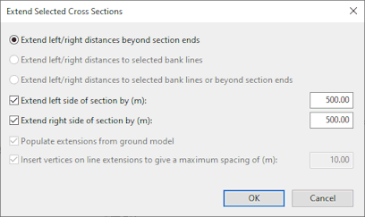 The dialog is displayed by selecting Geometry Extend Selected Cross Sections from the Model menu.