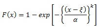 Scale, location and shape (α, χ, k) parameters of the selected probability distribution function are estimated using the method of L-moments.