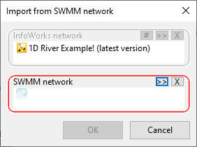 A drop target for the SWMM network that the network data is to be imported from. The applicable SWMM network can be dragged from the Explorer window into this box. |