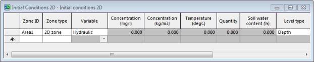 To open an Initial Conditions 2D Grid Window for editing, either drag the Initial Conditions 2D object from the Explorer window onto the main window background, or right-click the item and choose Open from the popup menu.