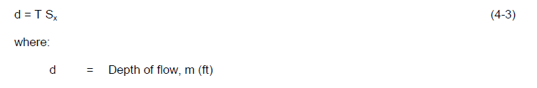 where: d= Overland Level - min(Ground level, Bottom storage level), m (ft) Sx = road cross slope, m/m (ft/ft) |