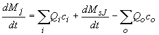 where: M J is the mass of suspended sediment or dissolved pollutant in node J (kg) Q i is the flow into node J from link i (m3/s) c i is the concentration in the flow into node J from link i (kg/m3) M sJ is the additional mass entering node J from external sources (kg) Q o is the flow from node J to link o (m3/s) co is the concentration in the flow from node J to link o (kg/m3) |