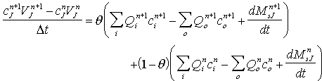 where c J is the concentration in node J (kg/m3) V J is the volume of water in node J (m3)