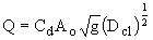 where Ao - orifice cross sectional area (m2) Dcl - height of water level above the centroid of the orifice (m) |