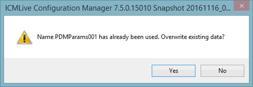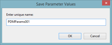 Select Yes to overwrite the data, or No to return to the Save Parameter Values dialog, where you can specify another name.