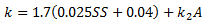SS = total concentration of sediment fractions (mg/l) A = algal concentration (mg/l) k2 = extinction coefficient relating to algal concentrations |