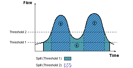 Click on the image below to display an example for the total number of spills over threshold that occur during the simulation. Example